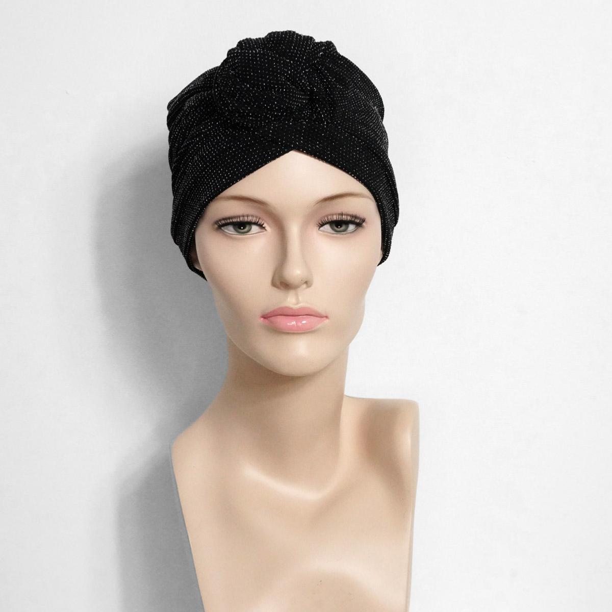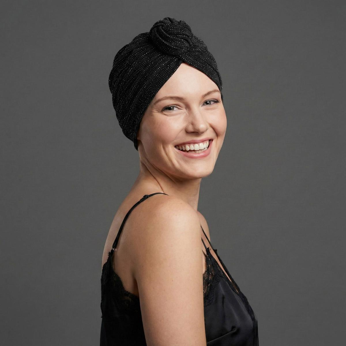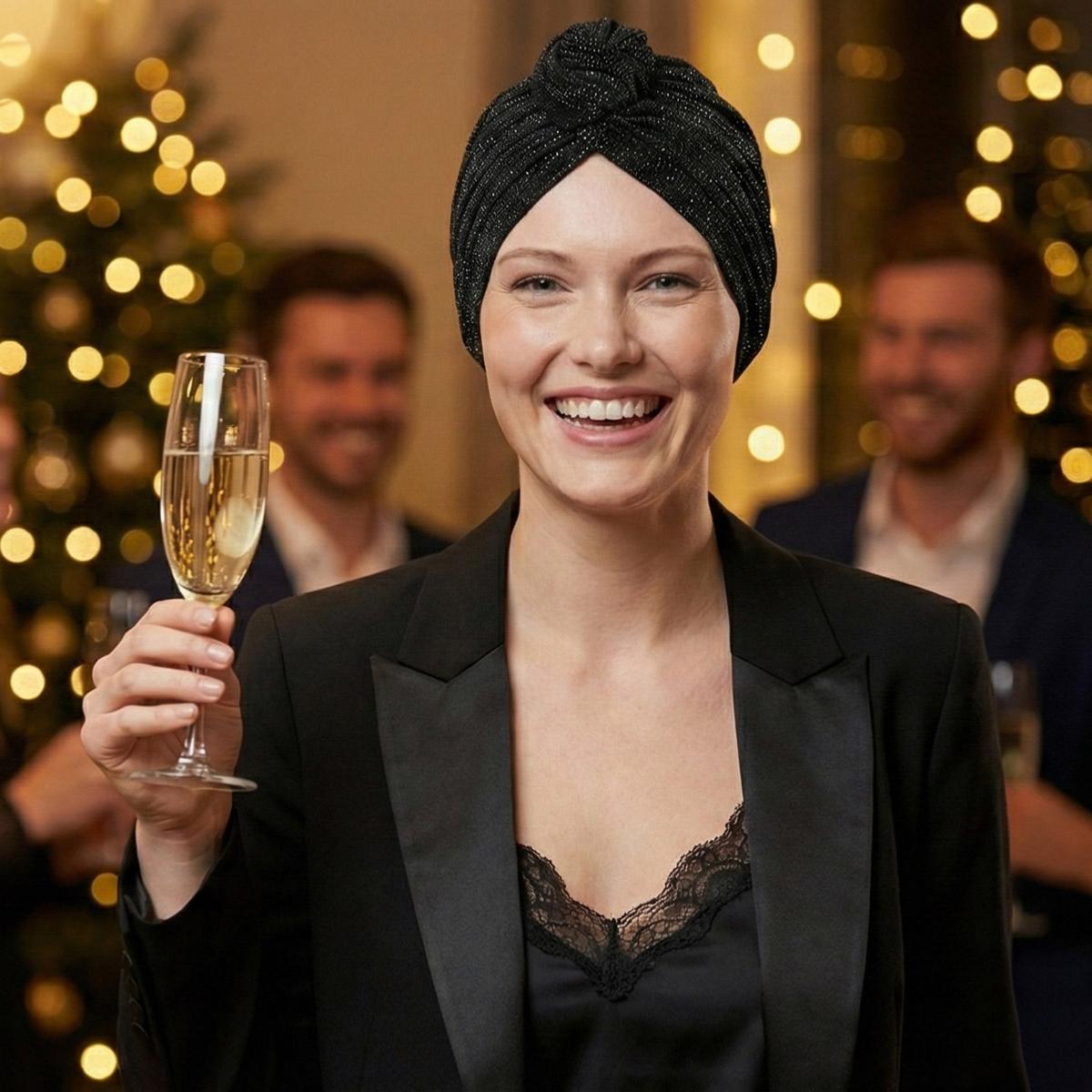 Turban Chimio Fêtes - Modèle Ella "Sur son 31" - Noir Pailleté & Bambou